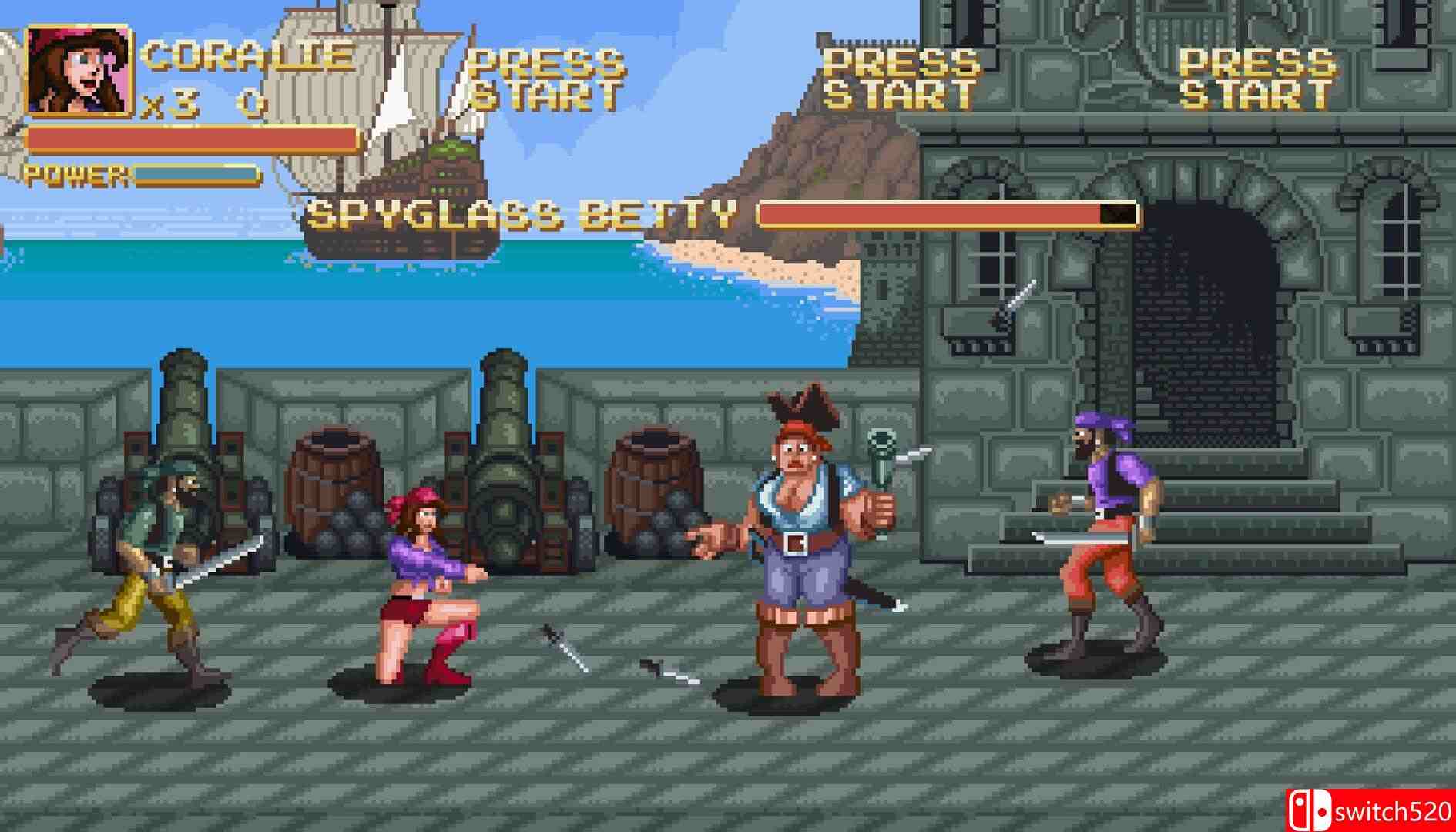 。游戏为 1989 年街机作品 Buccaneers 的官方重制版,加入全新关卡、角色、BGM 和 Z 轴移动机制,保持早 90 年代热血街机动作风格。switch520